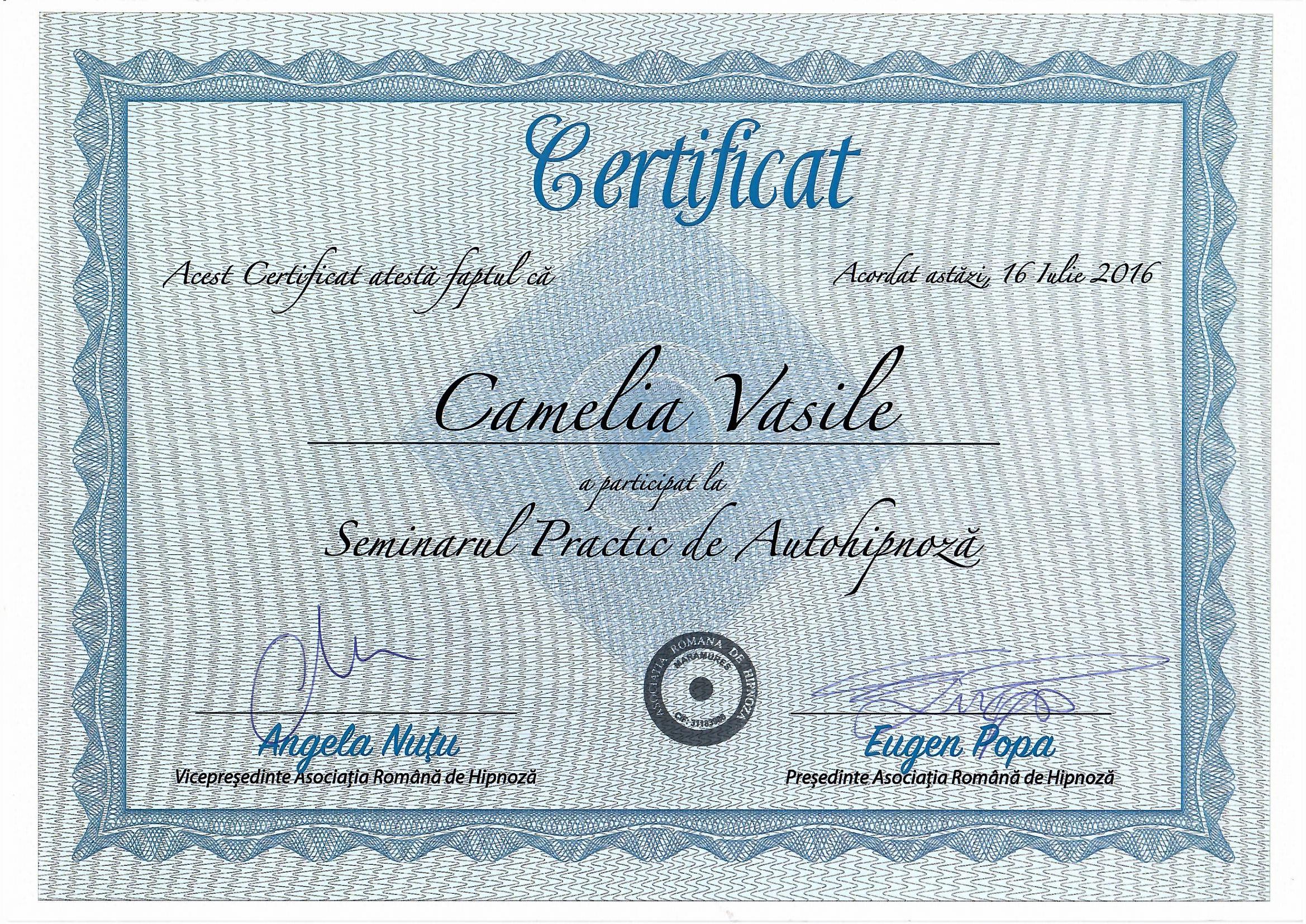 „Sedintele terapeutice alaturi de Vasile Camelia, mi-au redat increderea in mine, mi-au readus fericirea in viata mea, m-au invatat sa gandesc deschis, sa-mi intrec fricile, sa vad viata cu alti ochi si sa ma bucur de micile bucurii ale vietii! Dincolo de relatia terapeutica, pe care o pot caracteriza profesionala, intelectuala si plina de interes, va pot spune ca am castigat un om pe care te poti baza in orice situatie.. Mie mi-a readus speranta si pofta de viata si o recomand din tot sufletul!”