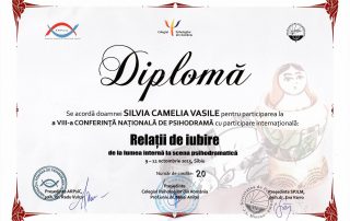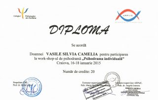 - Atestat libera practica- psihoterapie-psihodrama clasica – acreditat de Colegiul Psihologilor din Romania;