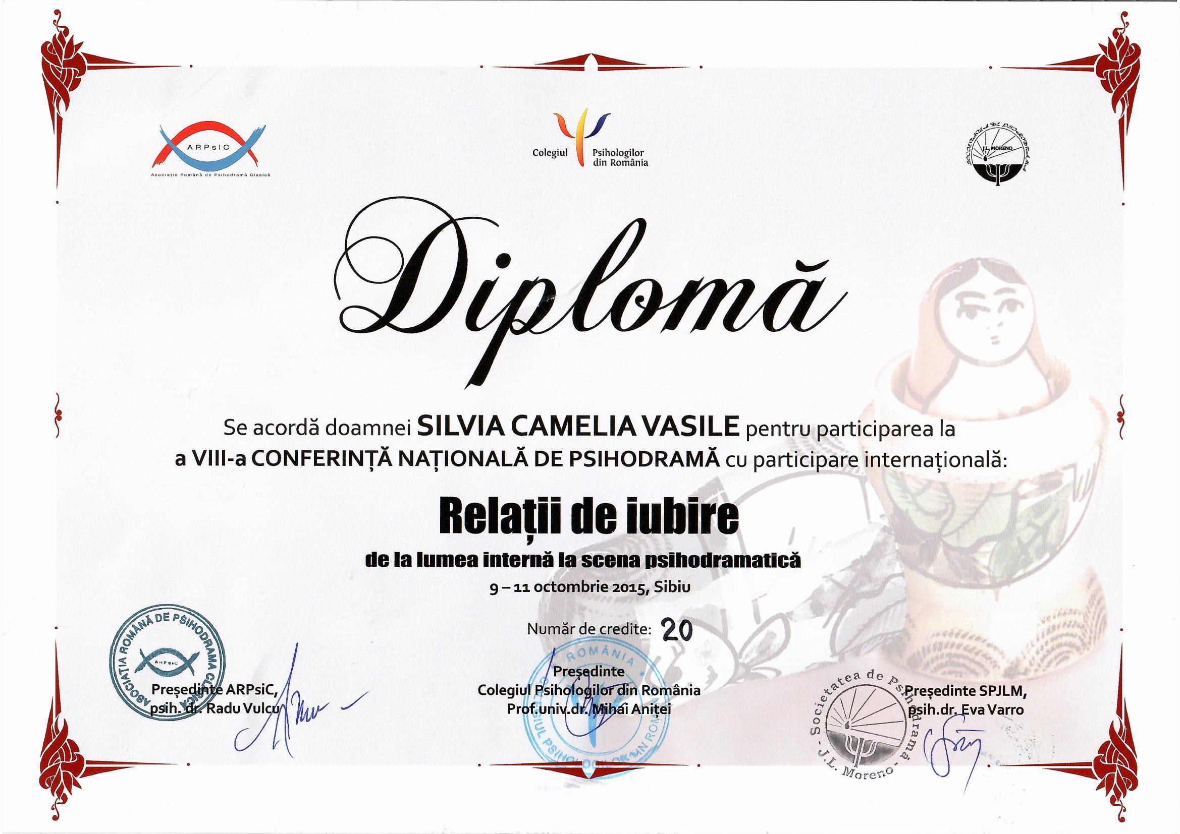 • Conferinta Nationala de Psihodrama, Sibiu 2015 – “Relatii de iubire – de la lumea interna la scena psihodramatica”;