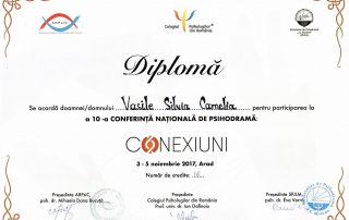 - Conferinta Nationala de Psihodrama, Arad 2017 – “Conexiuni”;