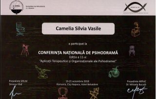 - Conferinta Nationala de Psihodrama , Cluj-Napoca 2018 – “Aplicatii terapeutice si organizationale ale psihodramei”;