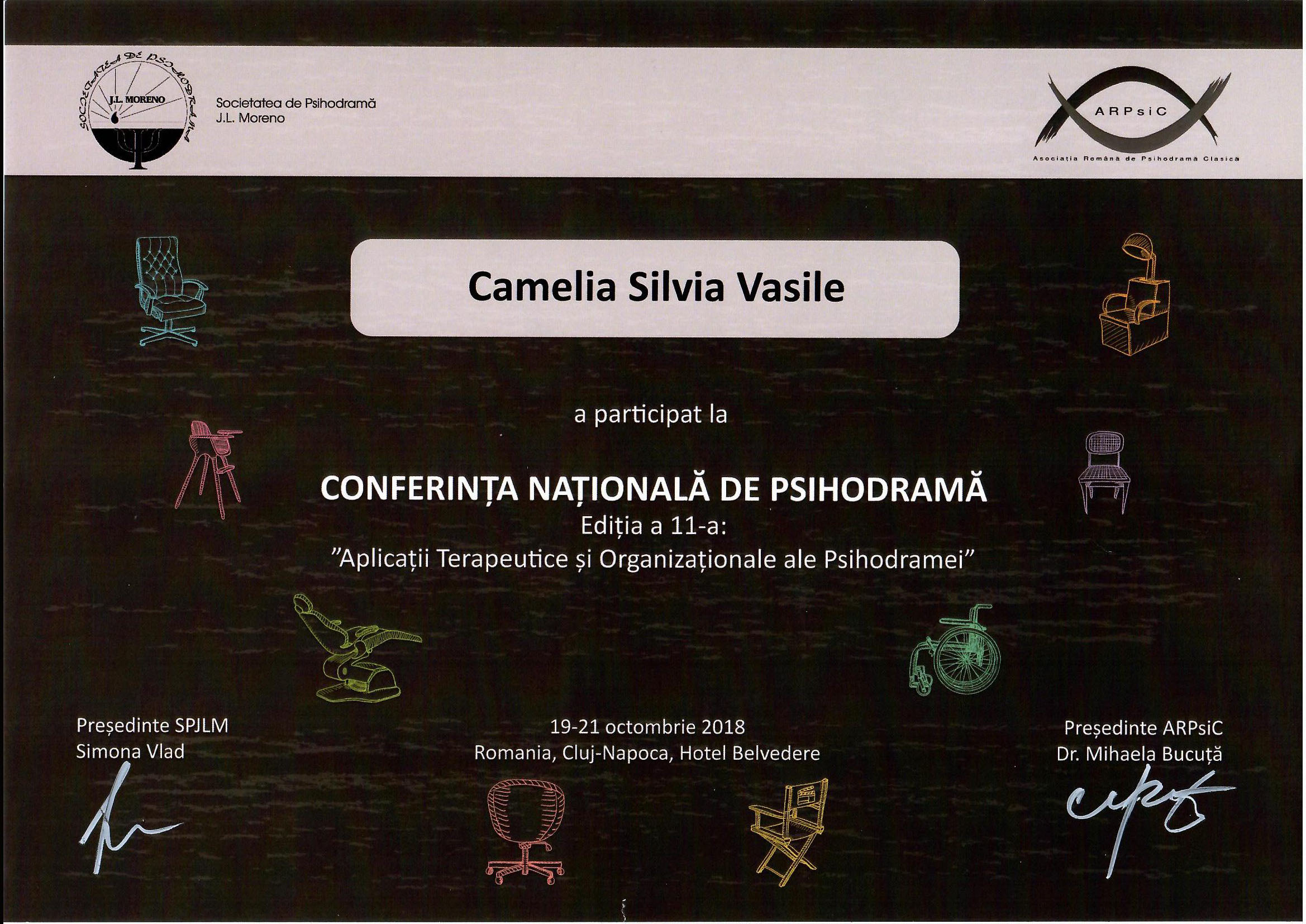 • Conferinta Nationala de Psihodrama , Cluj-Napoca 2018 – “Aplicatii terapeutice si organizationale ale psihodramei”;