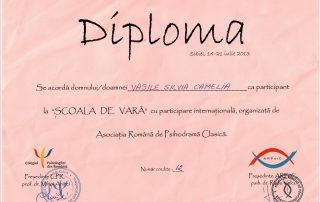 - Scoala de vara, Sibiel 2013 acreditata Colegiul psihologilor din Romania;