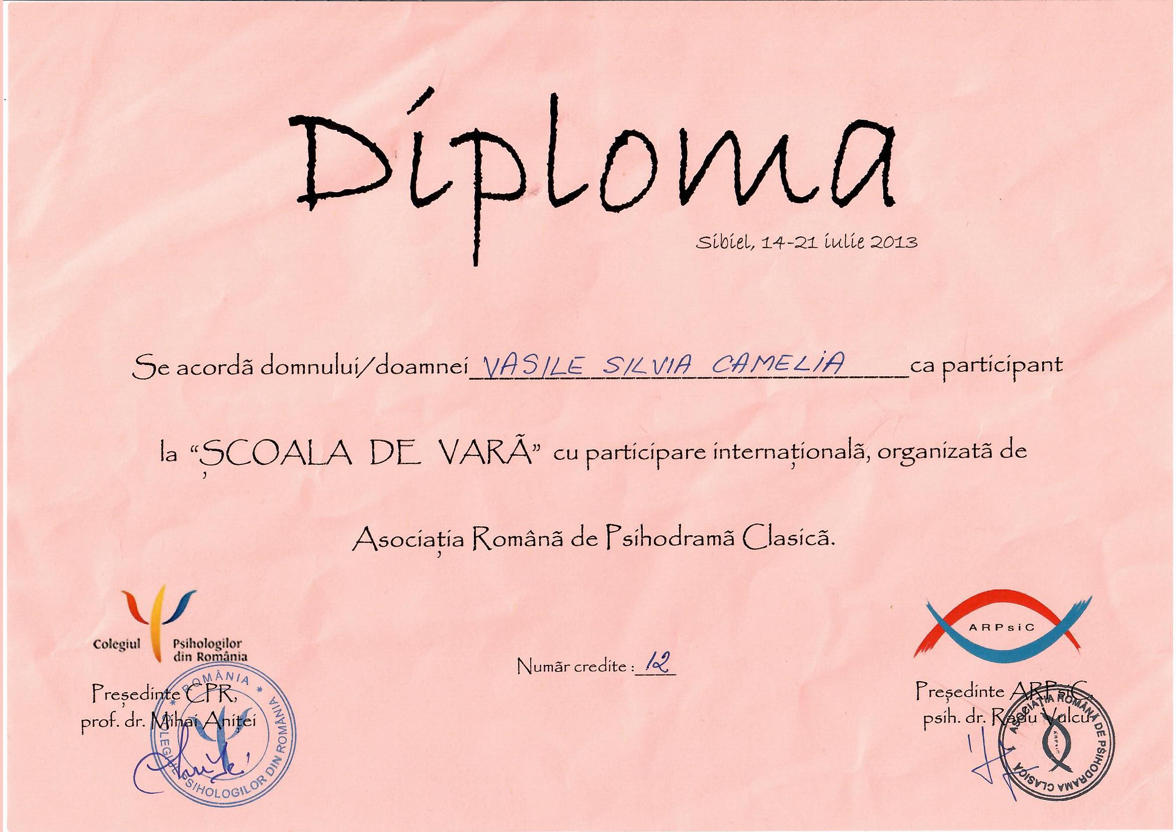 • Scoala de vara, Sibiel 2013 acreditata Colegiul psihologilor din Romania;